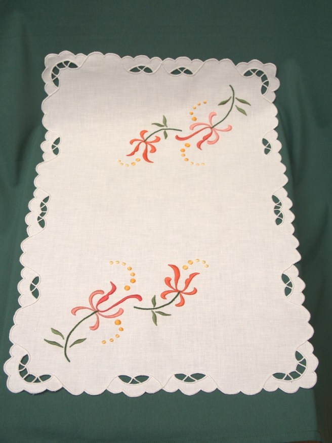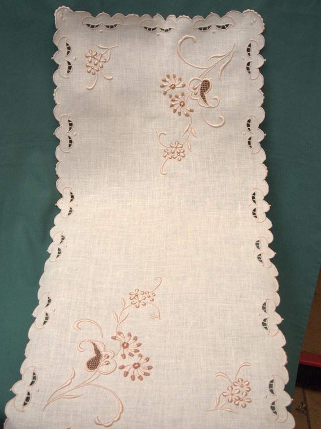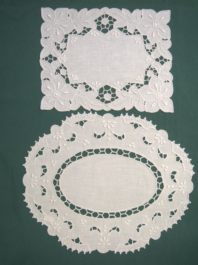 Piezas Actualmente tenemos las siguientes piezas a la venta: Panera: 20 euros. Paño superior: 30 euros. Paño inferior: 30 euros. Paño superior: 20 euros. Paño inferior: 30 euros. Juego de tocador (5 piezas): 70 euros. Cubrebandeja: 25 euros. Cubrebandeja: 25 euros. Paño: 25 euros Cuadro izquierda: 20 euros. Cuadro derecha: 9 euros. Cuadro: 25 euros Cuadro: 12 euros. Cuadro: 30 euros. Bolso: 35 euros. Saco de pan: 35 euros. Saco de pan: 35 euros. Paño: 45 euros. Camino de mesa: 90 euros. Camino de mesa: 70 euros Toalla: 250 euros. Comparte: Compartir en X (Se abre en una ventana nueva) X Compartir en Facebook (Se abre en una ventana nueva) Facebook Me gusta Cargando...